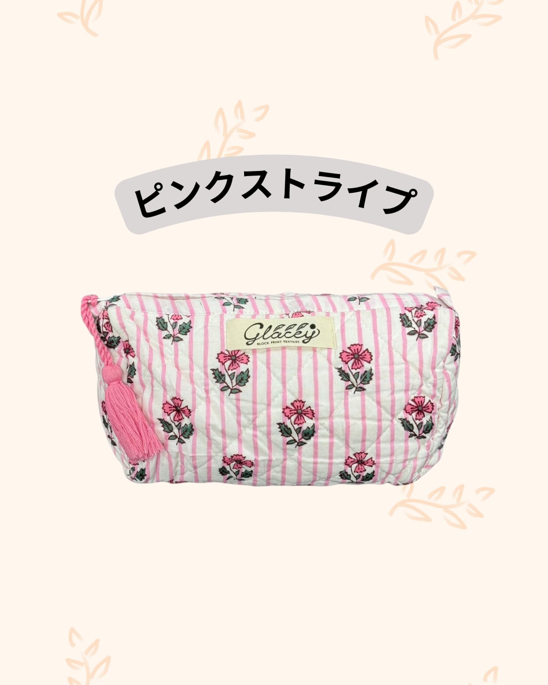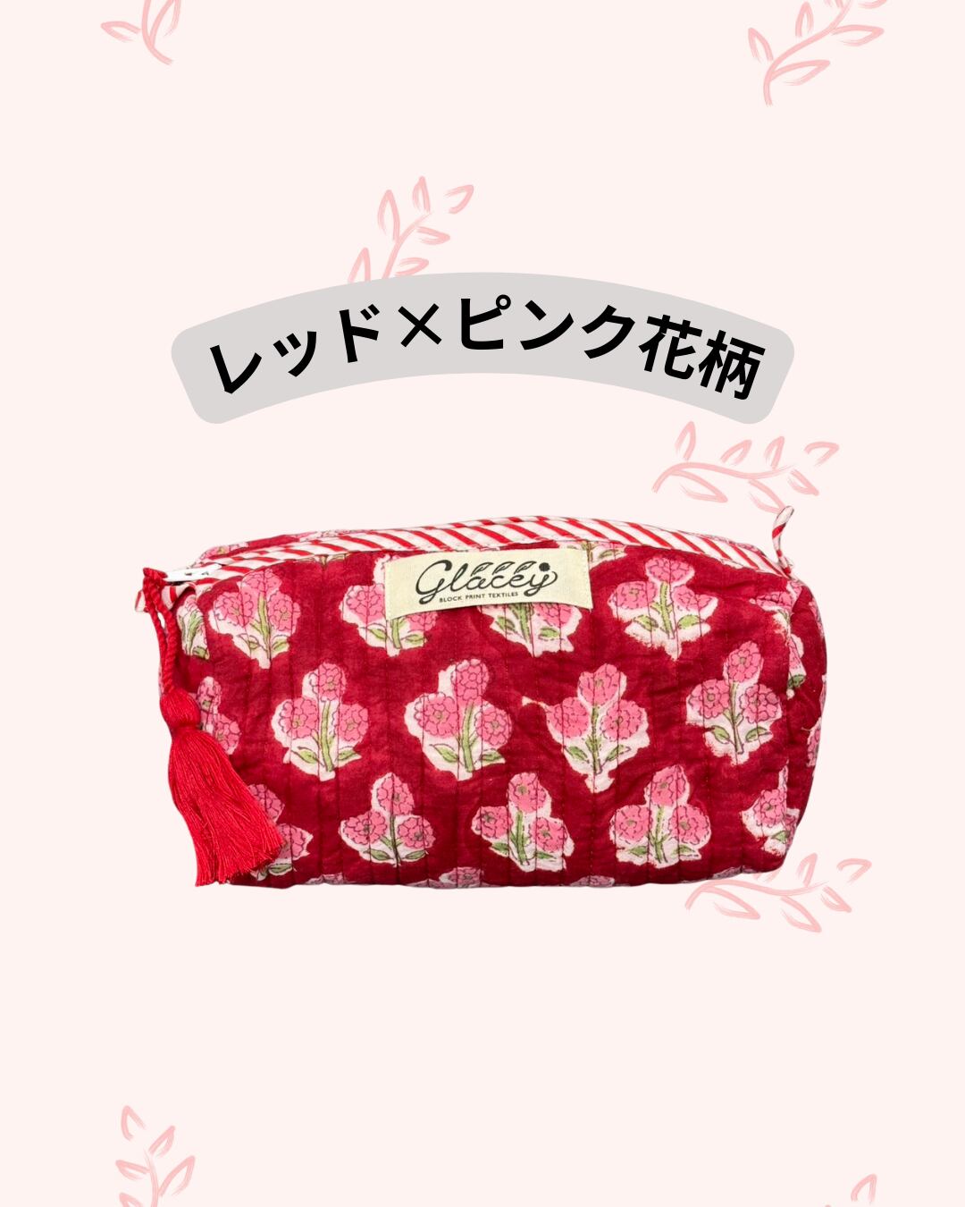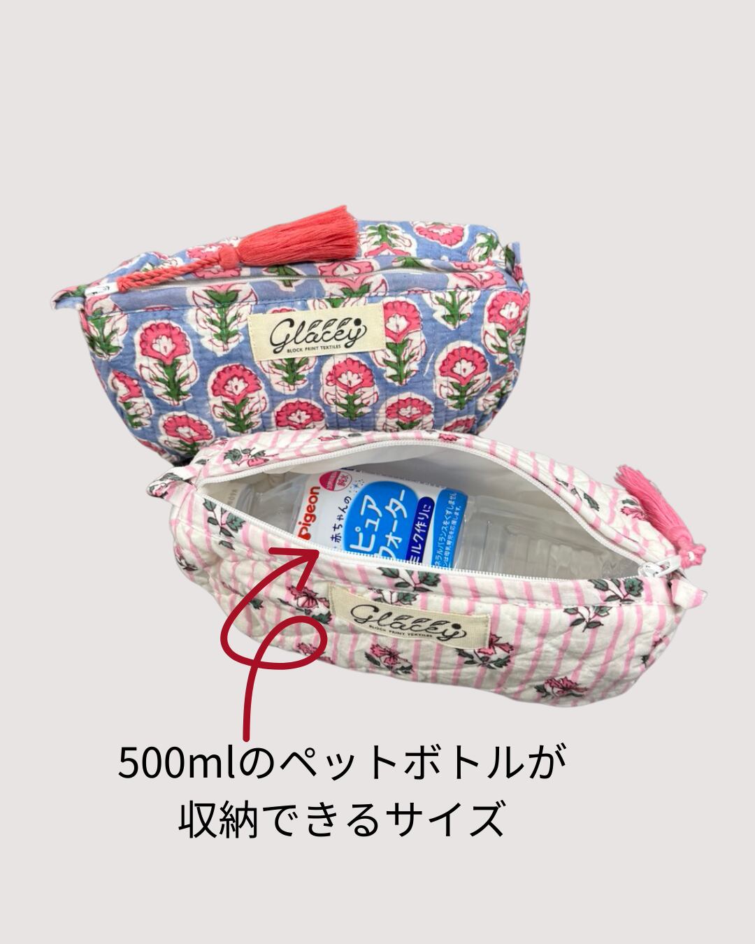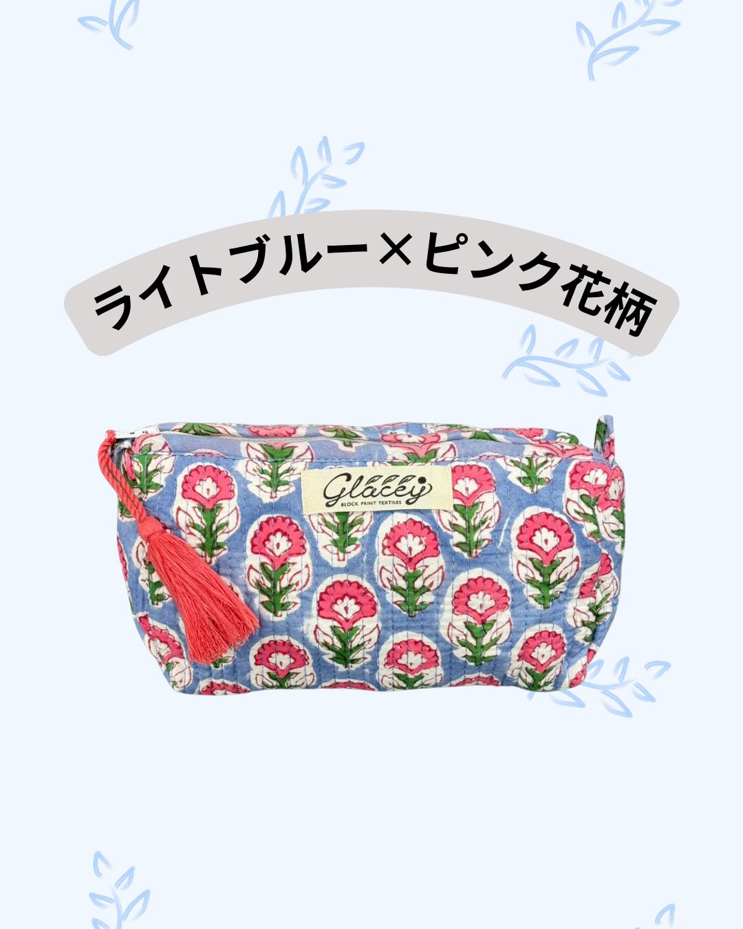 インドの伝統技法「ブロックプリント」で仕立てたポーチ。