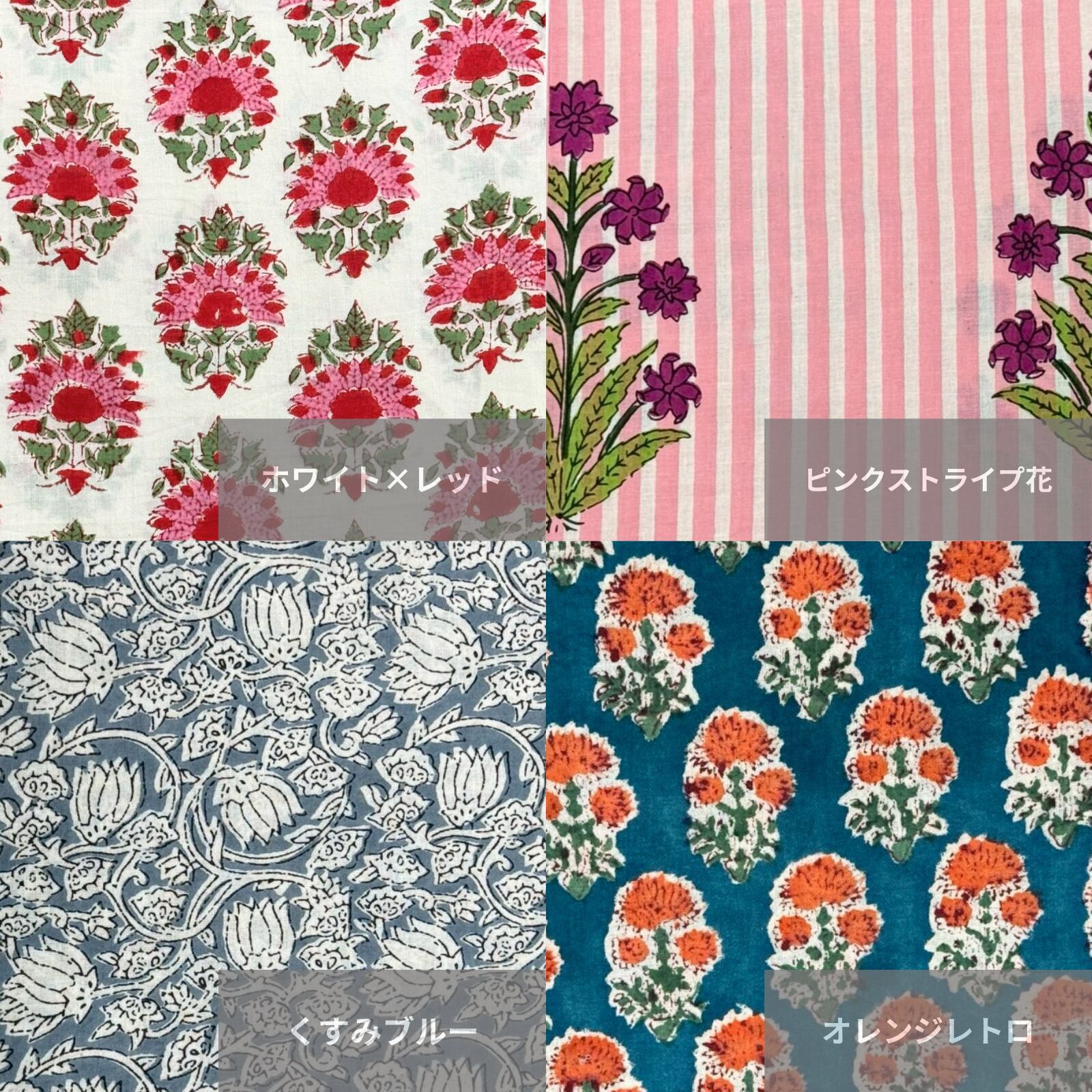 ⚫︎ブロックプリント染料特有の匂い、色落ちの可能性がございます。何度かお洗濯すると落ち着きますので、その間は別洗いをおすすめしております。