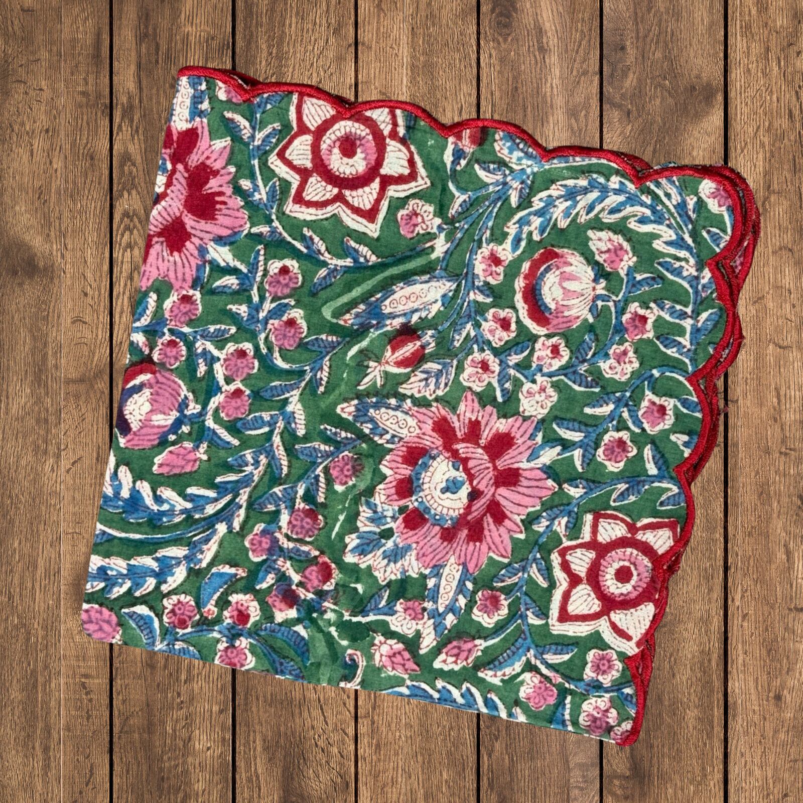 ブロックプリントの柄を存分に楽しめるハンカチーフは、ふち波カットが可愛い一枚。持ち歩きやギフトはもちろん、ちょっとしたインテリアとしてもおすすめです。