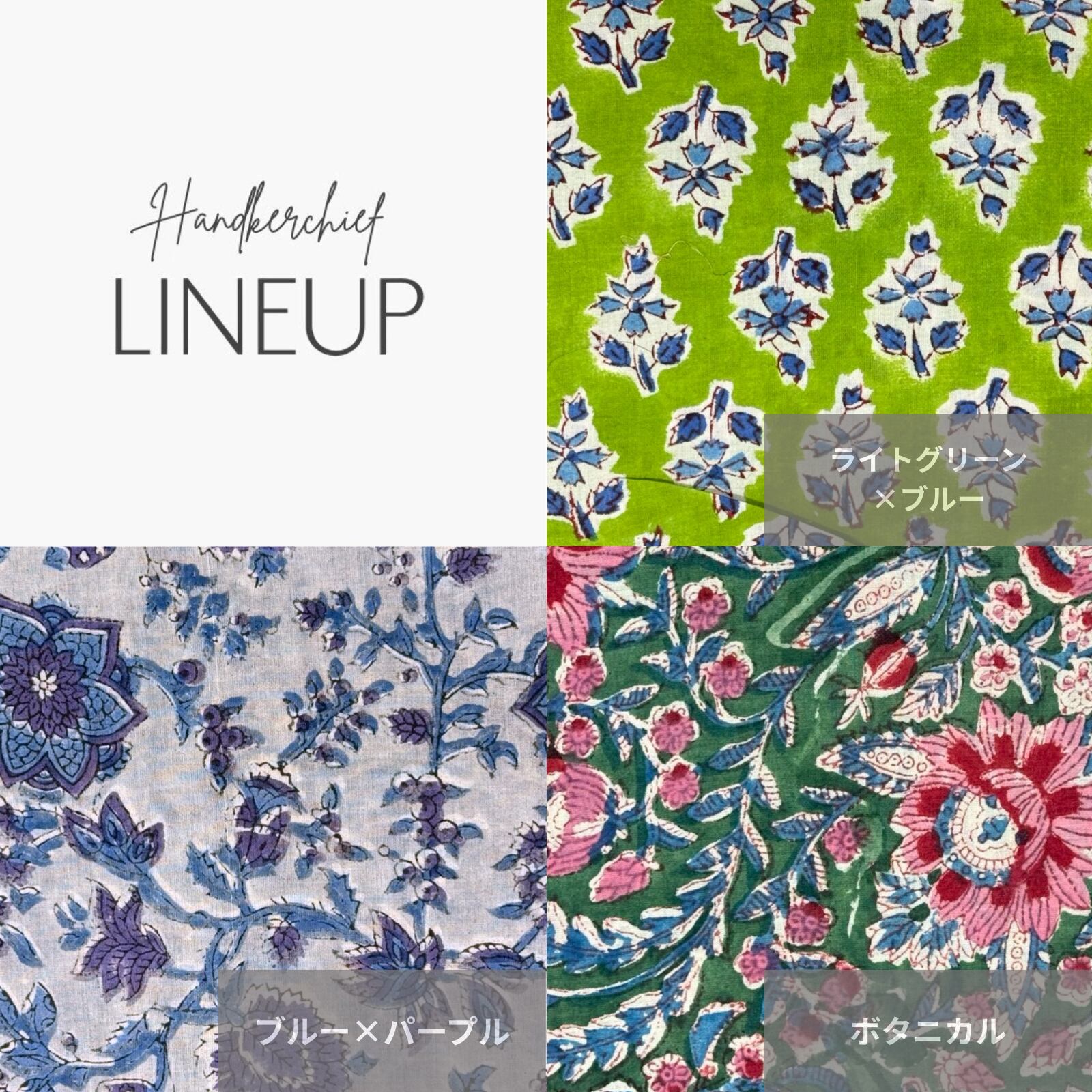 ブロックプリントの柄を存分に楽しめるハンカチーフは、ふち波カットが可愛い一枚。持ち歩きやギフトはもちろん、ちょっとしたインテリアとしてもおすすめです。