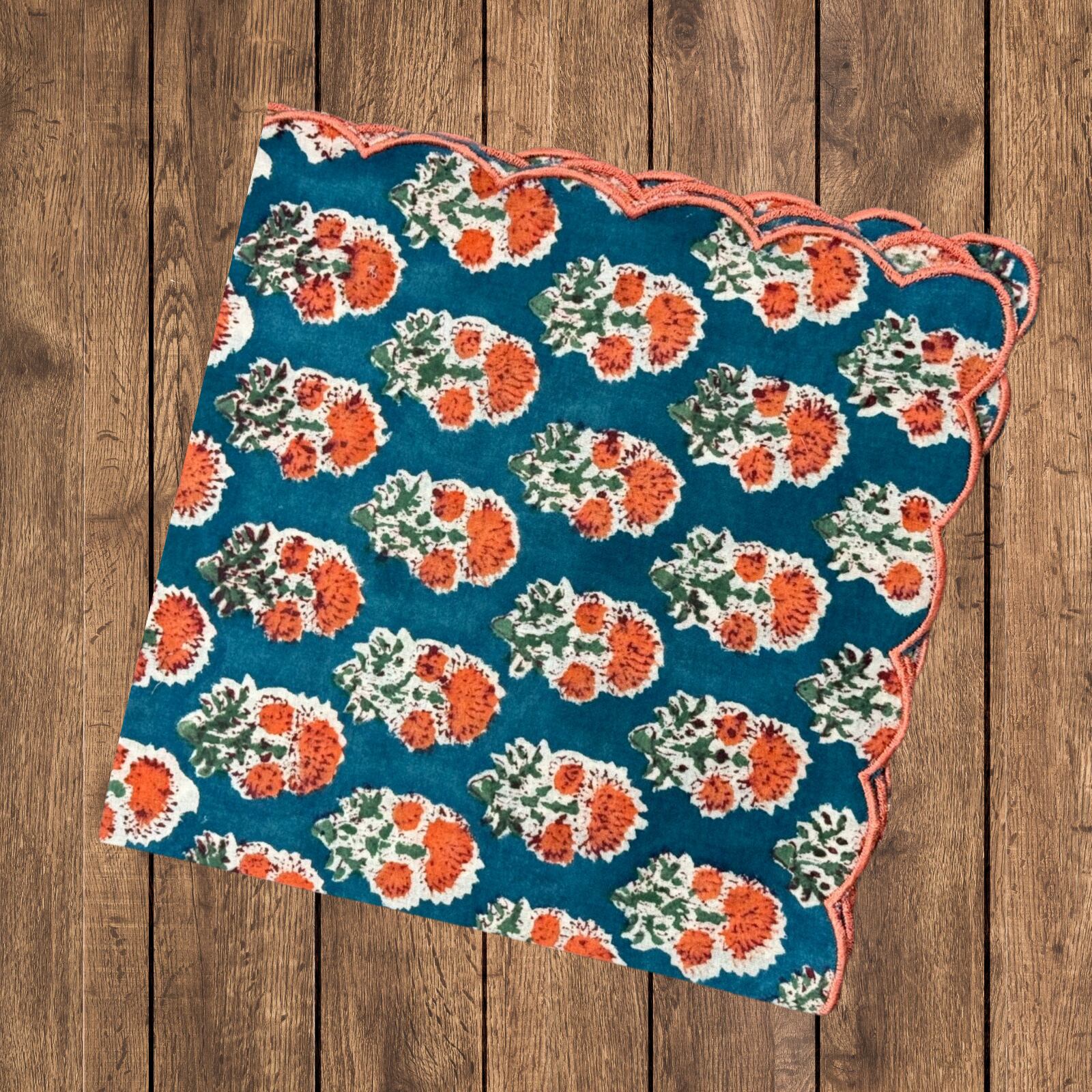 ブロックプリントの柄を存分に楽しめるハンカチーフは、ふち波カットが可愛い一枚。持ち歩きやギフトはもちろん、ちょっとしたインテリアとしてもおすすめです。
